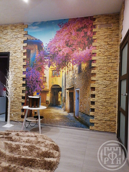 Внутренняя отделка стен армированная декоративная штукатурка с покраской.