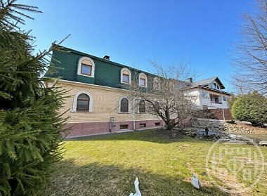 Цоколь дома отделан из полнотелого кирпича. Отделка площадки у дома брусчатка.