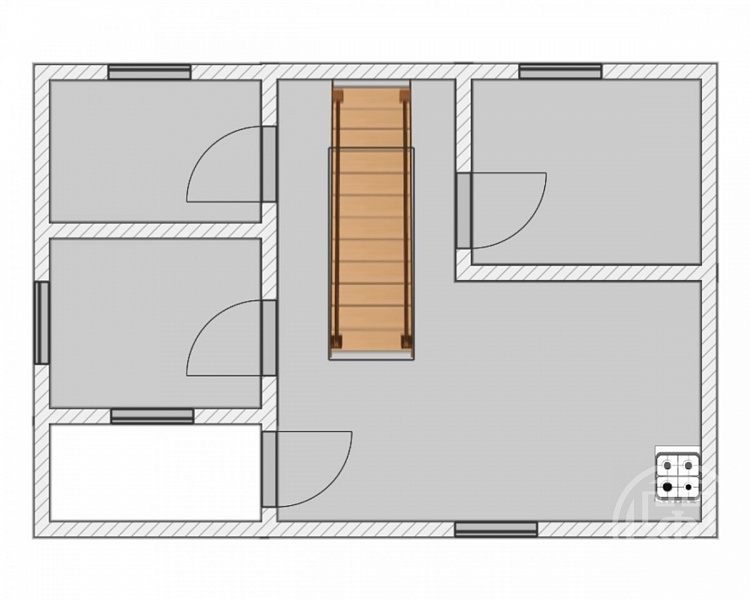 · Планировка: 1 этаж — прихожая-гостиная, кухня, санузел, 2 спальни; 2 этаж — одна большая комната (можно разделить).