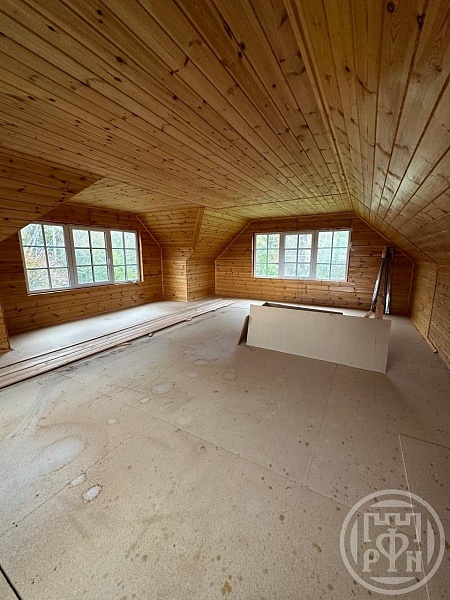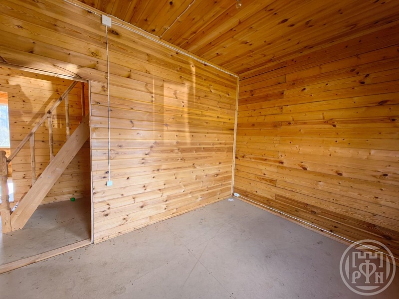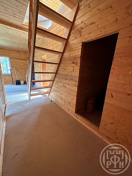 · Качество и потенциал: Тёплый дом из бруса 150х100 мм с межвенцовым утеплителем. На втором этаже — открытая планировка, которую можно легко разделить на 2-3 комнаты по вашему проекту. Есть отдельное помещение под будущий санузел.