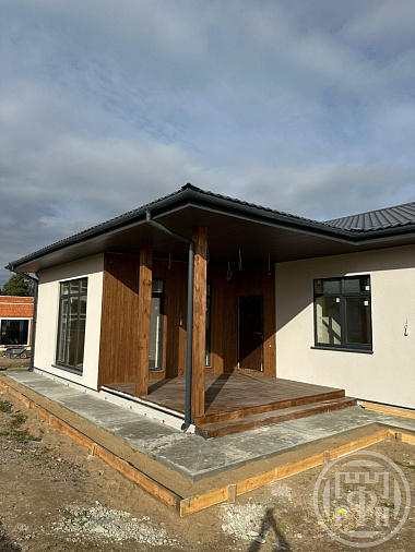 Санкт-Петербург, поселок Левашово, Горское шоссе. Продаётся одноэтажный ДОМ 116,8 кв.м. и УЧАСТОК 12 соток, собственность зарегистрирована. ЗЕМЛЯ: * Статус земельного участка: земли населённых пунктов, регистрация Санкт-Петербург. КОММУНИКАЦИИ: * Газ магистральный, подключение дома выполнено. Установлен котел Baxi. * Вода: скважина на участке, дебет хороший. * Септик: локальный на 5 чел. * Отопление: водяной тёплый пол по всей площади дома. * Дренаж фундамента сделан. ДОМ: * Одноэтажный, построен 2023-2024гг. * 4 отдельные комнаты, 2 сан. узла, кухня-гостиная. * Дом строил аккредитованный Сбербанком подрядчик. * Стройка на всех этапах контролировалась отдельно нанятым тех. надзором со стороны продавца. * Фундамент - плита 30 см, стены - газоблок ЛСР 400, окна Века. * Текущее состояние: предчистовая отделка, все инженерные работы проведены, сделана отмостка, разводка отопления, воды, электрики сделаны, выполнена чистовая отделка сан.узлов. ИНФРАСТРУКТУРА: * Дороги городского значения, отличная транспортная доступность. * Остановки общественного транспорта - 9 минут пешком. * Школы, садики рядом. * Озёра, пляж, лес в пешей доступности. * КАД, ЗСД - 5 мин, метро- 20 мин. Есть опция обсудить с застройщиком чистовые работы, он готов произвести их на схожих условиях действующего договора строительства.