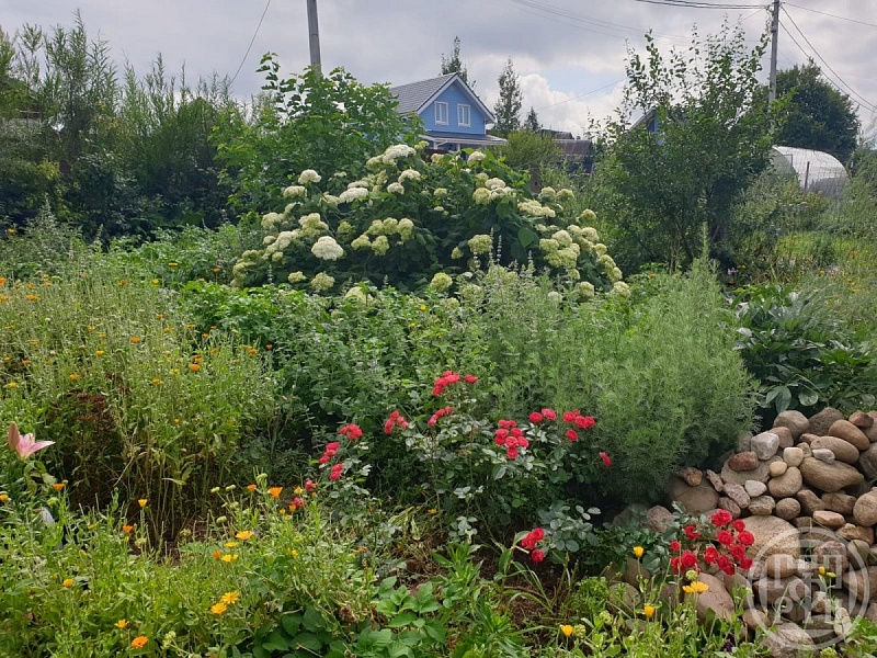 Территория участка огорожена сетчатым забором. Есть въезд для автомобиля.
