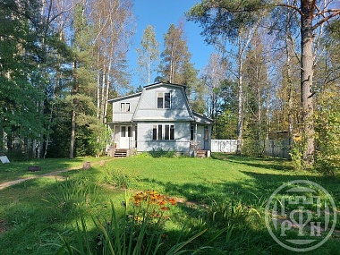 В Вырице, Гатчинский район Ленинградской области, продаётся жилой дом. Фундамент ленточный, стены из бревна, мансарда каркасная с утеплителем, крыша покрыта ондулином. На первом этаже расположены три спальни и кухня-гостиная площадью 16 кв. м с камином. В мансарде находится просторная комната без отделки площадью 26 кв. м. При использование камина тепло во всём доме. Дополнительно для отопления в доме установлены электрические конвекторы. В санузле установлен электрический тёплый пол. Вода поступает из колодца и заведена в дом, канализация подключена к станции биоочистки «Топаз». На участке растут плодовые деревья и кустарники. Есть отдельный хоз блок. При необходимости можно подключиться к магистральному газу. Электричество предоставляется в объёме 15 кВт. До железнодорожной станции 10 минут пешком, до центра Вырицы 20 минут ходьбы.