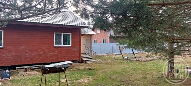 Теплый дом из бруса, в доме большая кухня-гостиная, комната (спальня), санузел, веранда. На участке баня, хоз.блок, сарай. Шикарные многолетние сосны. Участок угловой.