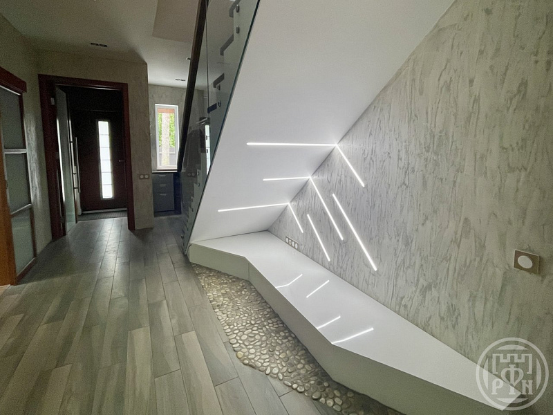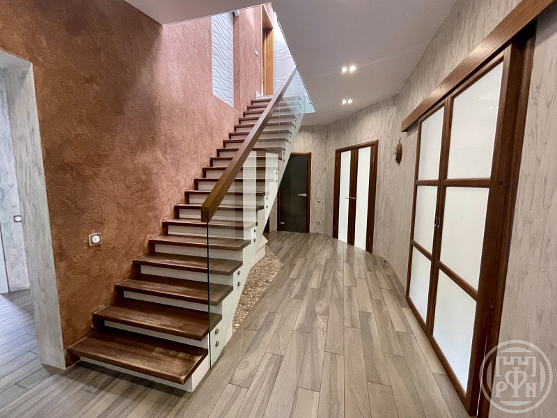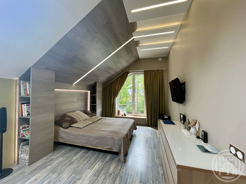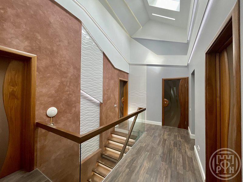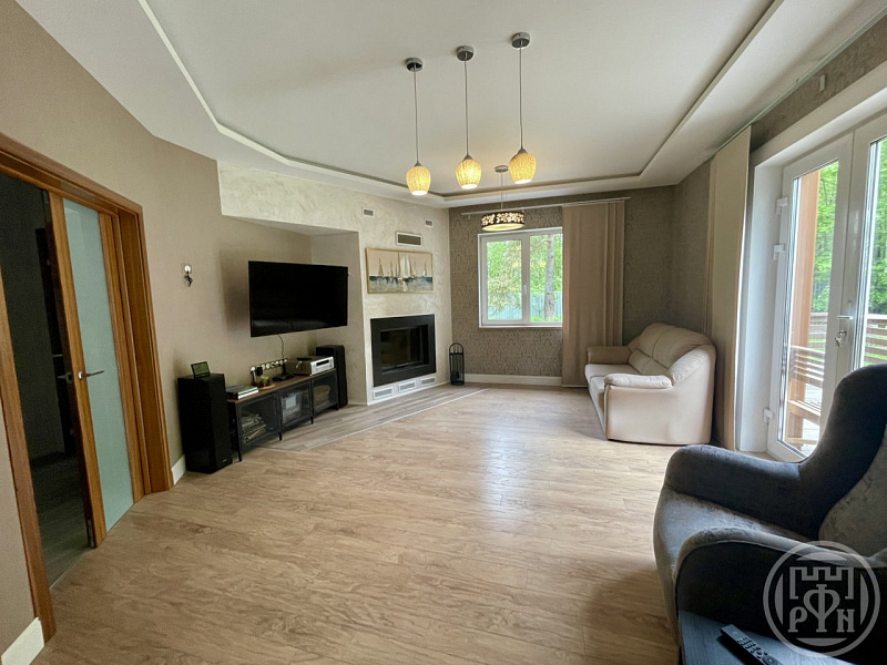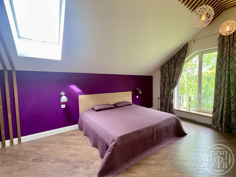 В коттедже пять уютных спален, каждая площадью 20 м². Просторная кухня-гостиная занимает 45 м². В доме выполнен дизайнерский ремонт с использованием высококачественных материалов.