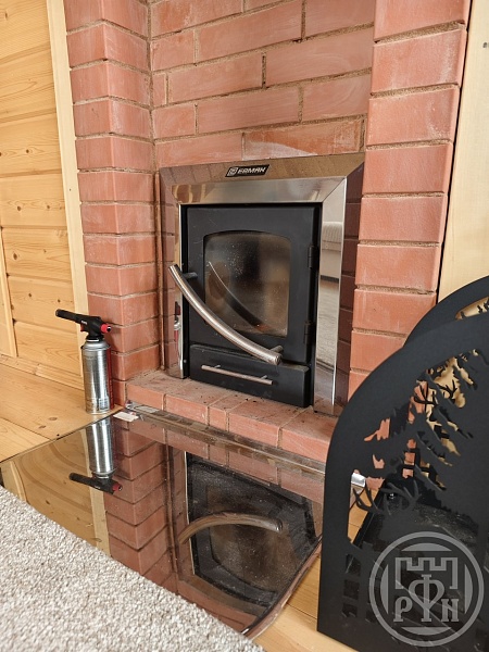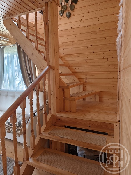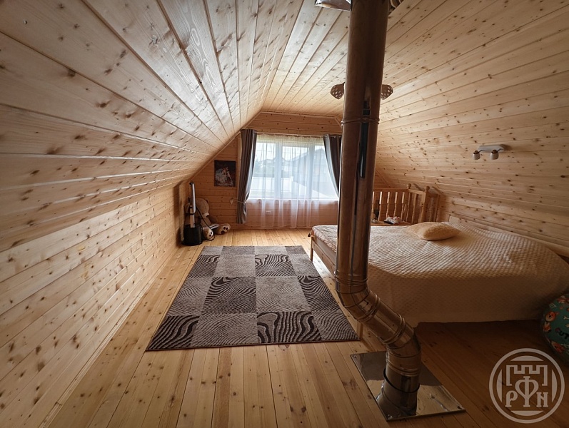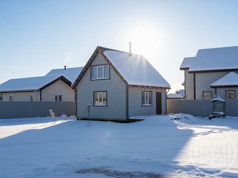 Домик представляет собой компактное, но полностью автономное жильё: оснащён системами канализации и водоснабжения. Внутри расположены баня с душевой кабиной, уютная спальня и просторная кухня-гостиная с камином — идеальное место для отдыха и семейных встреч. Всё оборудование и планировка позволяют использовать дом в качестве постоянного жилья в период эксплуатации. Изначально он задуман как баня и размещён в углу участка, что оставляет простор для строительства основного жилого дома.