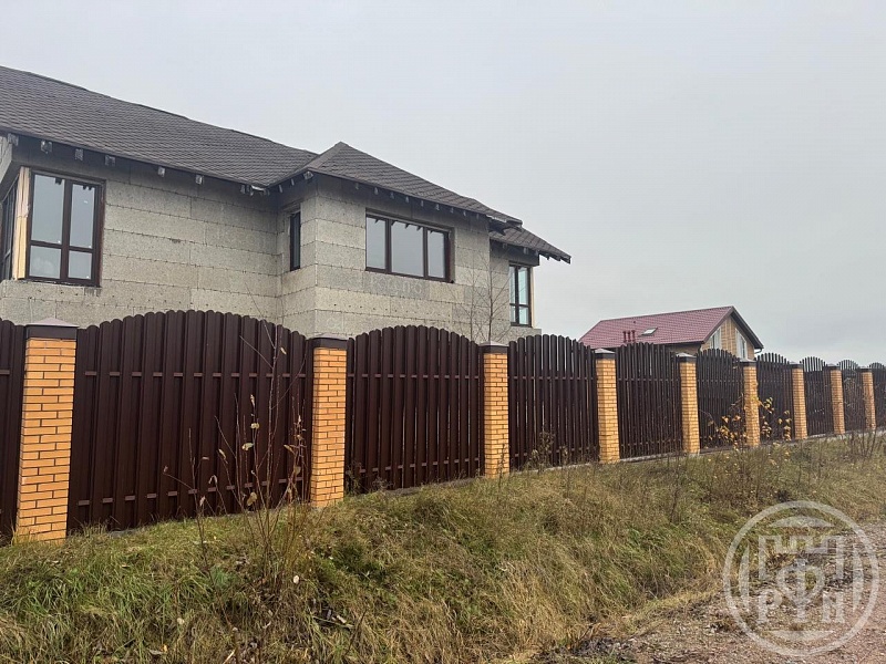 Участок огорожен качественным забором на ленточном фундаменте с откатными воротами.