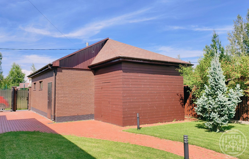 Домовладение включает в себя сам дом, гараж с хозяйственным помещением, банный комплекс.