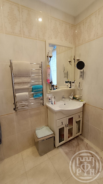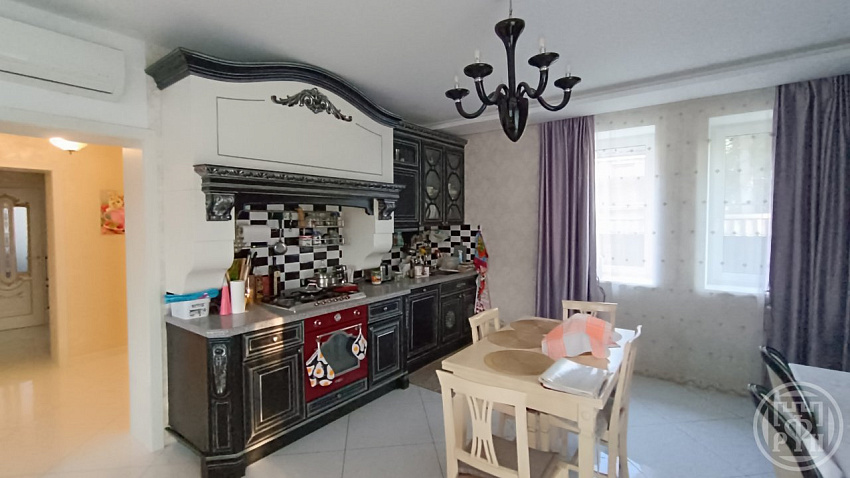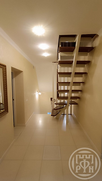 Качественная отделка помещений, ламинат высокого класса. Лестница выполнена из натурального дуба на металлокаркасе. Кухонный гарнитур из натурального дерева, каменная столешница, дорогая кухонная техника.
