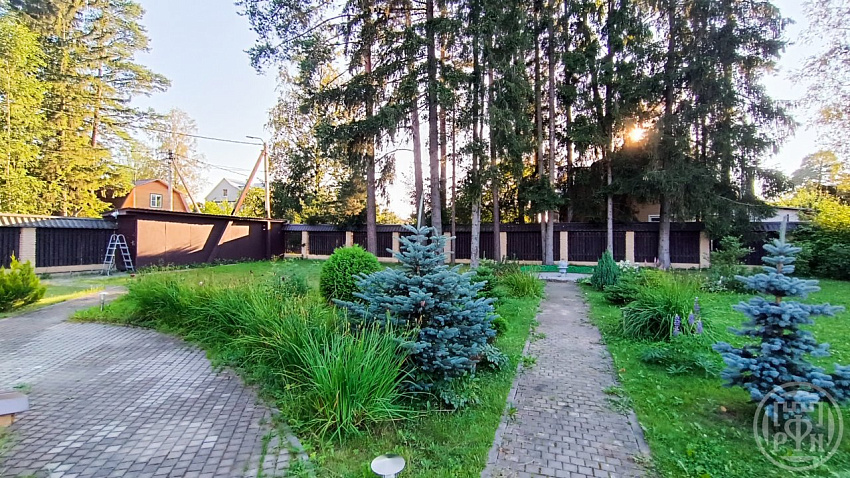 Участок солнечный, ухоженный, с соснами, выполнено мощение. Большой навес на 3 машины. Огорожен по периметру достойным забором. Расположен в проулке на 4 дома, что обеспечивает дополнительные места для парковки.