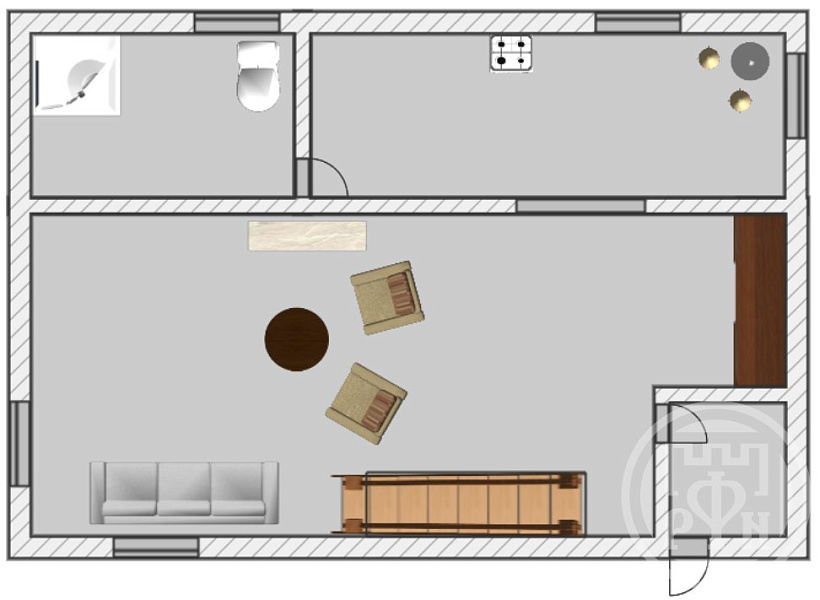 1 этаж: коридор, гостиная, кухня, с/у (душевая кабина, бойлер на 70 литров, полы керамогранит с подогревом)