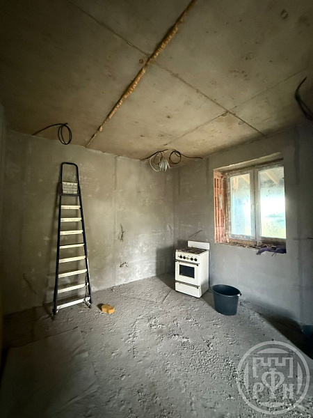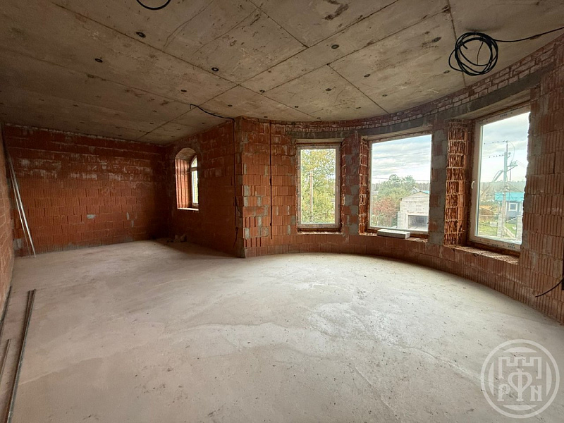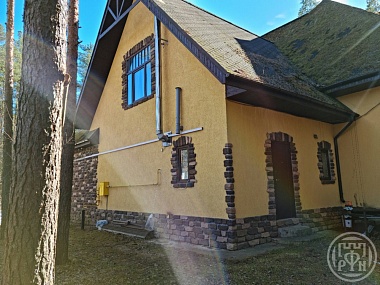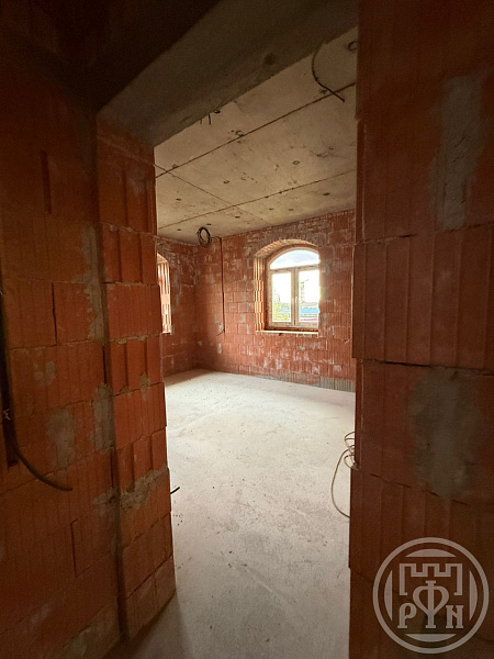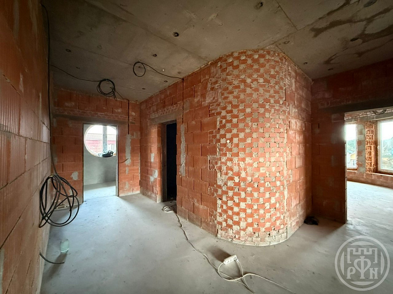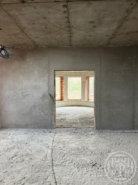 Кровля выполнена из премиальной керамической черепицы. На данный момент выполнено 70% штукатурных работ. Подведено центральное газоснабжение и электричество 15 кВт (380 вольт).