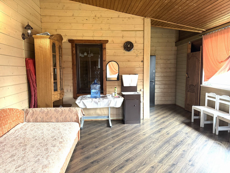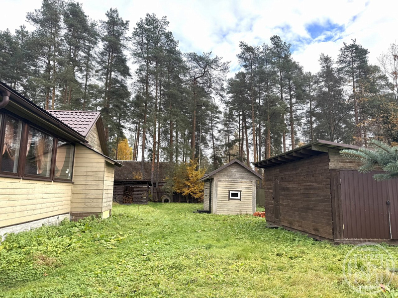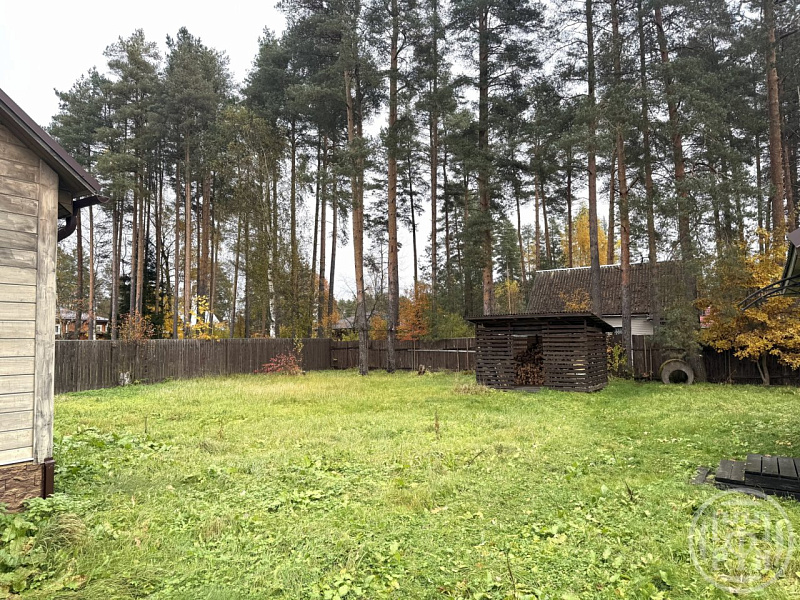 В Ленинградской области, Гатчинском районе, Вырице продаётся жилой дом на участке в 13,75 соток. Жилой дом 2013 года построено из финского профилированного бруса, утеплено снаружи. В доме просторная веранда 26 кв. м, кабинет 7 кв. м, гостиная с камином 34 кв. м и кухня 13 кв. м. Отоплением от камина и электрических радиаторов. Крыша покрыта металлочерепицей, водоснабжение из колодца. В 2014 году возведена баня из бруса с водоснабжение из собственной скважины. Также на участке есть гараж и хозблок. Территория ровная, сухая, без посадок и грядок. Электричество 15 кВт, есть возможность подключения к магистральному газу. Все соседи хорошие. До магазина и железнодорожной станции 10–15 минут пешком. Есть возможность увеличения земельного участка. Для большой семьи есть возможность приобретения соседнего дома.