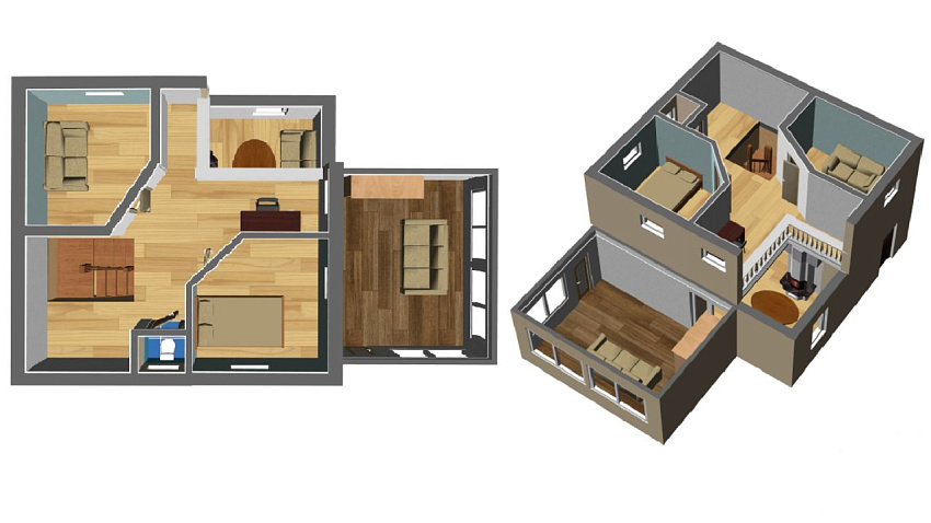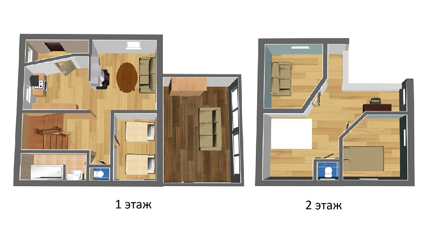 Второй этаж: две изолированные спальни 13,2 и 11,6 кв.м., санузел, а также небольшое, но уютное рабочее пространство.