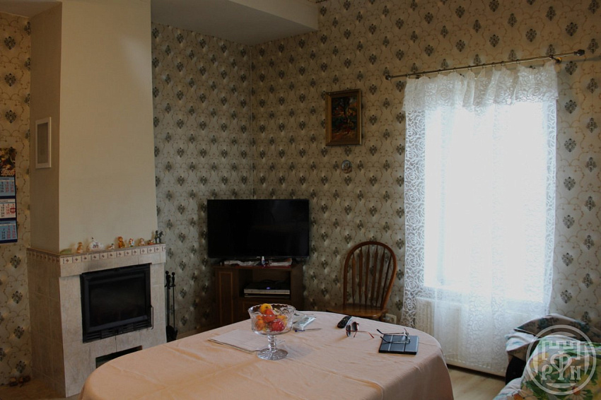 Первый этаж: кухня 10,2 кв.м., гостинная 14,4 кв.м. со вторым светом и натуральным камином, изолированная спальня 8,8 кв.м., раздельный санузел и светлая веранда.
