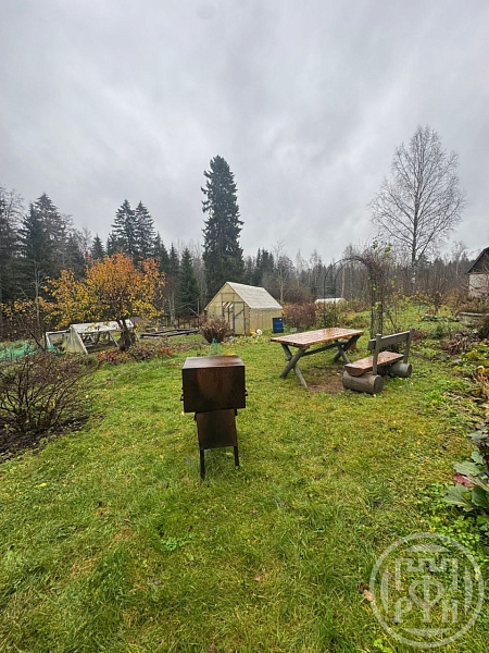 На территории находится гараж построенный из пеноблоков, в связи с этим хорошо держит тепло и отапливается печью на дровах. Вода подаётся в дом из колодца, который поставлен рядом с финским колодцем, где чистейшая питьевая вода. Сам участок находится на возвышенности, так же есть много ягодных кустов теплица, грядки и небольшой курятник. К участку примыкает лесополоса, через которую идет тропинка к речке метров 50. Замечательное место где можно проживать постоянно.