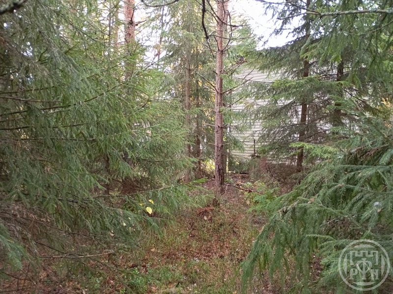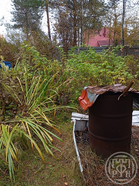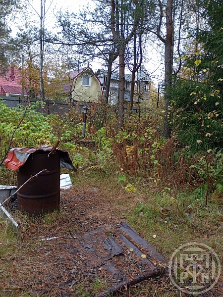 Участок 6 соток, прямоугольной формы, наполовину разработан, есть хвойные деревья, что придает участку особую зону отдыха, вокруг все застроено.