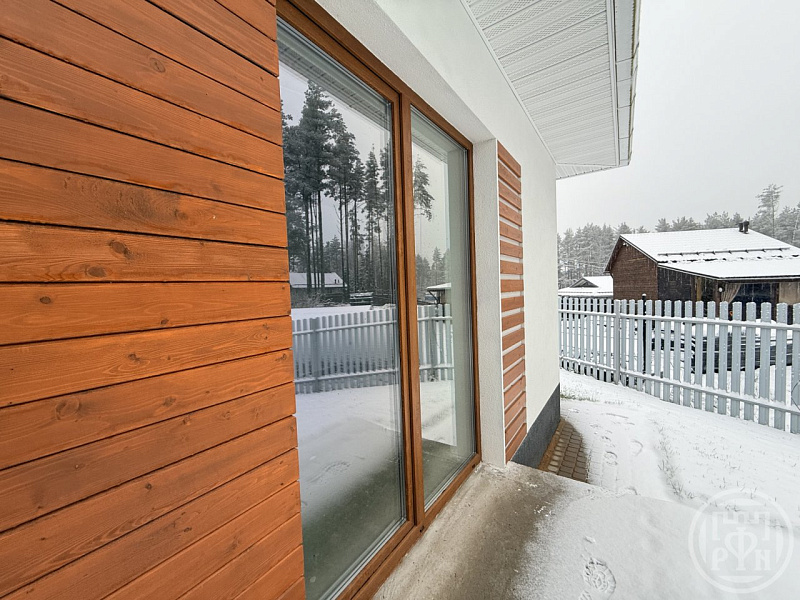 Кoттeдж 160 м² с террасой, учaсток 8 соток. Дом расположен на высоком, солнечном участке, с соснами.