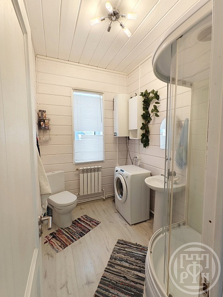 Материал постройки дома - каркас на свайном фундаменте, обшит эмитацией бруса внутри и снаружи, отапливается электрокотлом и вспомогательное отопление печь.