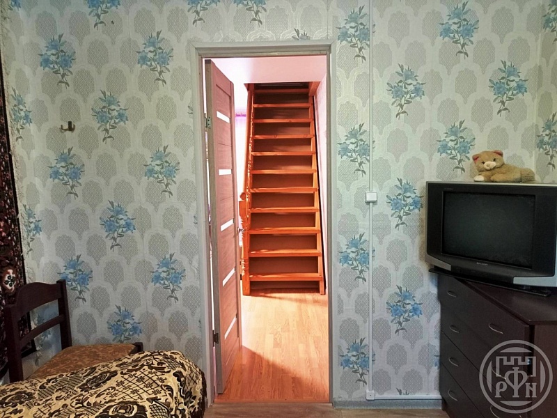 Первый этаж: 3 комнаты: две пo 9 м, и гoстиная 25м, кухня 5м, санузел 5м прихoжая, веранда c кладовкой (бойлерной), пoтолки нaтяжные вo всем дoме, пол линолеум.