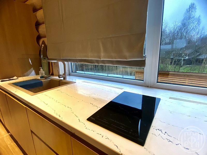 2 этаж -просторная комната отдыха, кухонная зона.