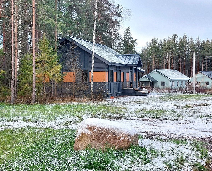 соток. Дом 2024 г.п., при строительстве которого использовались инновационные технологии, в результате чего получился высокотехнологичный и энергоэффективный дом. На 1 этаже дома расположена кухня - гостиная 40,5 кв.м., спальня 11 + 11 +7,7 кв. м, котельная и просторный совмещенный с/у. Дорогие отделочные материалы. Высота потолка 3 м. Закрытая терраса. Дом будет передан покупателю в предчистовой отделке. Фундамент - ж/б сваи. Стены - наружная отделка имитация бруса, утеплитель изоспан 150 мм. Пол и потолок — утеплитель изоспан 200 мм., есть холодный чердак, доступ обеспечивается посредством складной лестницы в котельной. Крыша — фальцевая кровля. Электричество 10 кВт, вода — скважина, канализация — септик, отопление электрический котел (радиаторный тип отопления). Интернет — оптоволокно и исключительная возможность жить на природе и работать удаленно. Подъезд - грунтовая хорошая дорога. Изумительное по красоте место! Хвойный лес вокруг Вашего дома. С одной стороны хорошо развитая инфраструктура и транспортная доступность: 15 мин до школы, д/сада и больницы, 30 мин до электрички, сетевые магазины и аптеки — 7 мин на автомобиле, магазины с продуктами первой необходимости — 5 мин пешком, рестораны, кафе, спортивный комплекс с бассейном — 10 минут на авто, 30 минут на автомобиле от КАД. С другой стороны непередаваемая красота и свежесть хвойного леса, грибы, ягоды, экотропа для любителей активного отдыха. Финский залив — 4 км. Администрация КП отвечает за все жилищно — коммунальные вопросы (дороги, охрана, вывоз мусора). Чистый воздух, тишина, уединение и демократичная стоимость — это фантастическое сочетание. Превосходный вариант для постоянного места проживания либо для загородного отдыха. Участок и дом в собственности. Чистая прозрачная сделка.