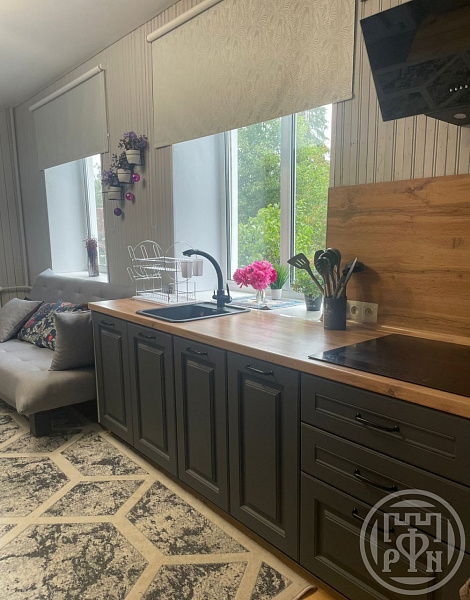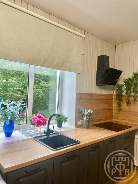 * новая встроенная кухня с духовым шкафом и СВЧ‑печью;