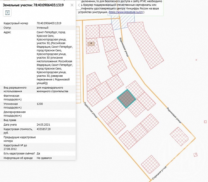 Кадастровый номер земельного участка 78:40:0906403:1319