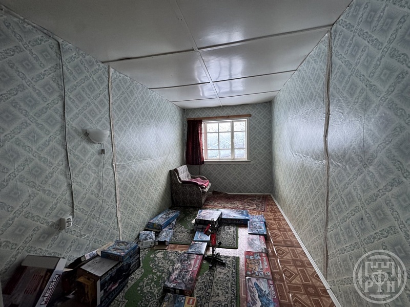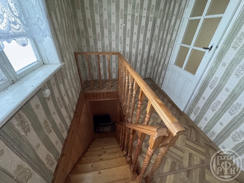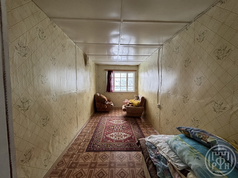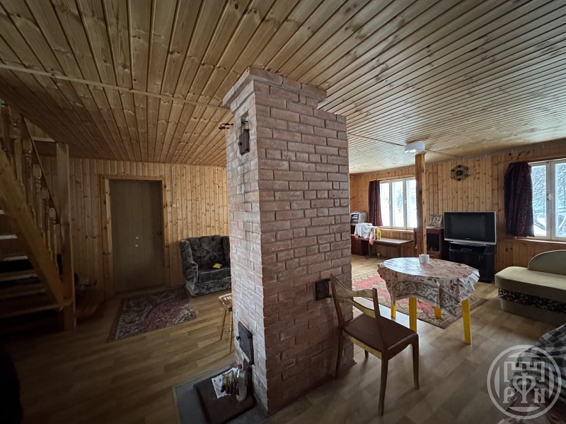 Дом двухэтажный. На первом этаже просторная комната и кухня, веранда. На втором этаже две комнаты. В доме хорошая кирпичная печь.