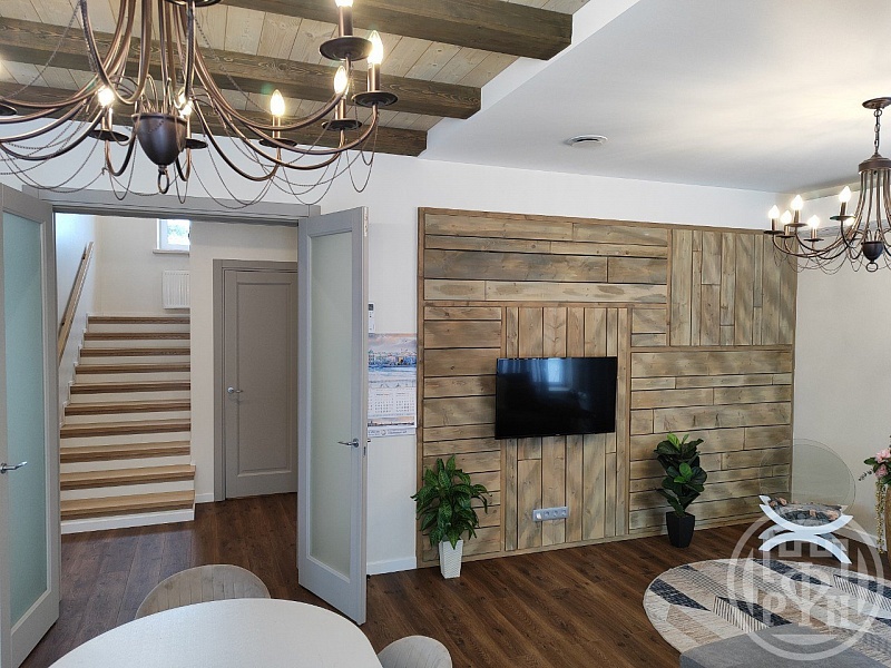 Кухня гостиная с выходом на террасу.