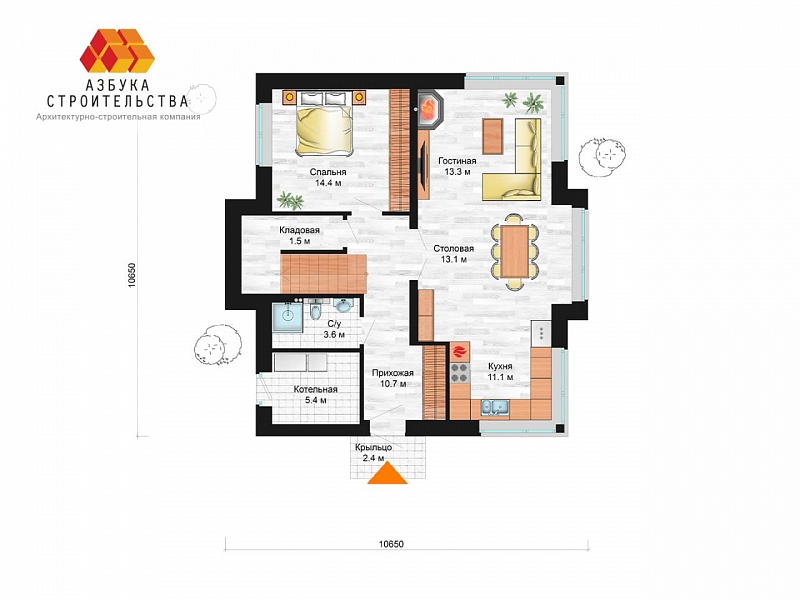 Дом на данном участке представлен проектом ДД143 от Азбуки Строительства.