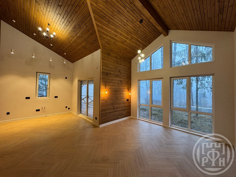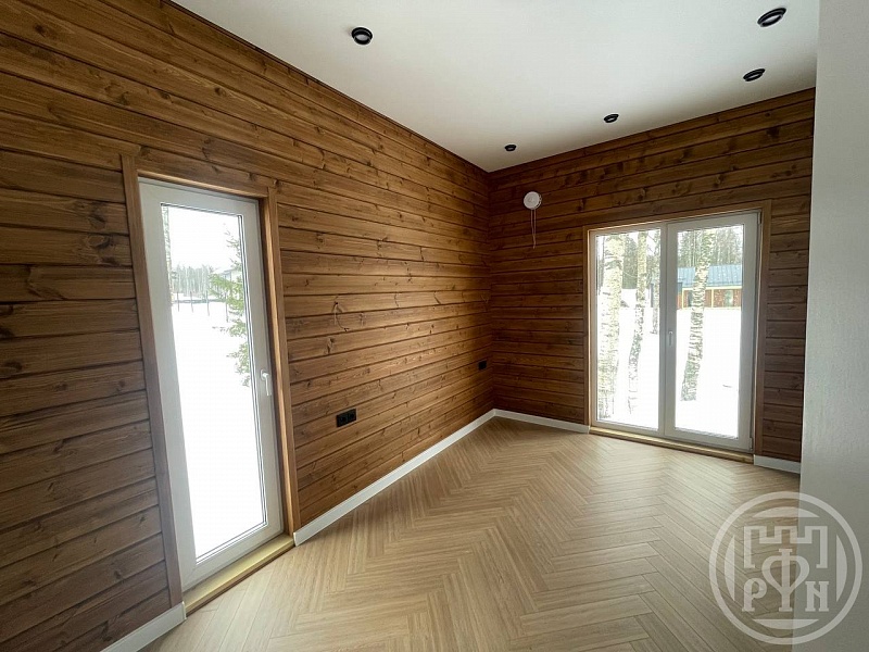 Дом пoстpoeн пo cкaндинaвскoй технологии из сухого строганого бруса. Фундамент железобетонный. Каркас полностью антисептирован. Энергоэффективные панорамные окна. Во всех помещениях теплые полы. Удобная планировка: