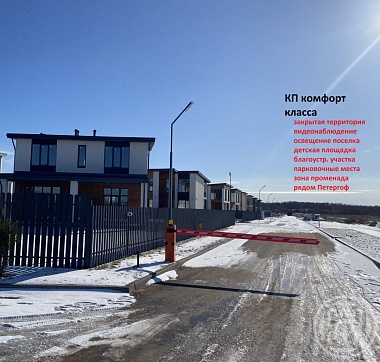 Ломоносовский район Ленинградской области Низинское сельское поселение Троицкая Гора `Усадьба в Петергофе` Транспортная доступность: ● Несколько заездов на участок, в посёлок ведут две дороги (из Петергофа с Гостилицкого шоссе и со стороны дворца Бельведер/д. Сашино). ● 10 минут пешком до `Ленты`, 20 минут пешком до автобусной остановки, 30 минут пешком до станции `Старый Петергоф`. ● 10 минут на машине до парков, озера и Финского залива. Коммуникации: ● Электричество — 15 кВт от Ленэнерго; ● Газ в посёлке (взнос оплачен, подключают быстро); ● Зимний централизованный водопровод (взнос оплачен, подключают быстро, вода безлимитная). ● Дороги с гранитной крошкой. ● Канавы и дренаж вдоль всех дорог посёлка и на подъездах к нему. ● Уличное освещение. Инфраструктура: ● В 20 минутах ходьбы — вся инфраструктура города Петергофа. ● Петергоф — один из самых оптимальных, комфортных и престижных и тихих пригородов Петербурга. Посёлок: ● Коттеджный посёлок `Усадьба в Петергофе` — уже обжитый, первые дома введены в строй 3-4 года назад. ● Закрытая территория, 3 въезда со шлагбаумами (в перспективе их будет больше). ● Круглосуточная охрана и патрулирование на машине 3-5 раз в сутки, система видеонаблюдения. ● Дороги чистит свой трактор. ● Взнос на содержание общего имущества посёлка (водопровод, дороги, охрана и т.п.) — 1500 рублей в месяц (250 рублей с сотки). ● Председатель живёт в посёлке и всегда на связи. Оформление и документы: ● Один взрослый собственник. ● Документы готовы. ● Не против ипотечников Торг — возможен. Звоните!
