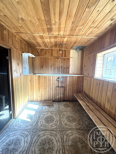 На участке расположена баня, совмещенная с гостевым домом и имеющая отдельный вход. Есть помещение для загородного инвентаря и отдельно стоящий гараж. Высажены плодовые кусты, многолетние цветы и деревья.