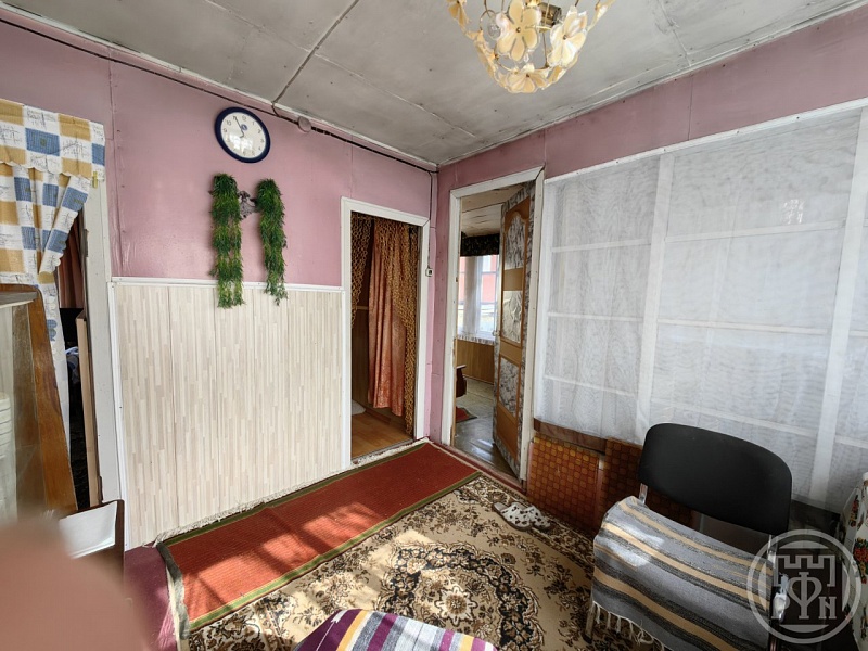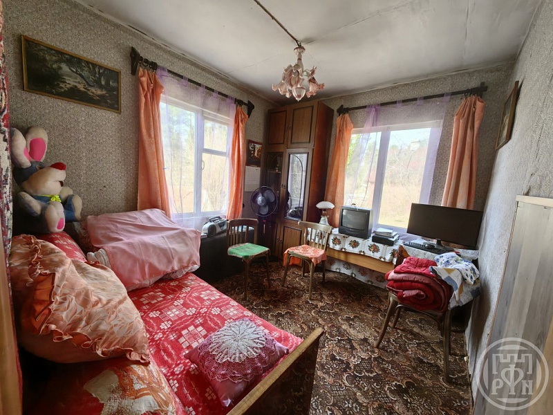 В доме 4 комнаты (гостиная, спальня, детская, комната отдыха) и кухня с печью.